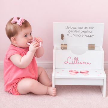 Customers are constantly sharing that their grown children still have their Personalized My Bambino Rocking Chair (or piggy bank or stool) and are now buying for a new baby