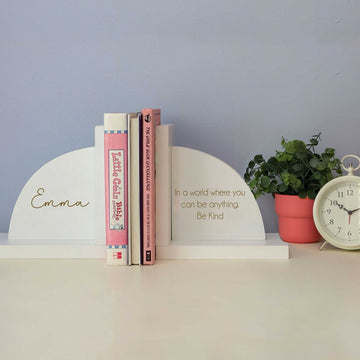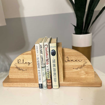 Elevate your bookshelf with our custom laser engraved bookends in white or natural wood. Crafted from high-quality materials, these bookends are a beautiful addition to any home or office. Personalize them with one or two names for a thoughtful and functional gift.