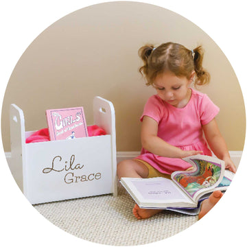 This handy Book Caddy is a great place to keep favored books, plush toys, or other favorite toys nearby. Ideal to keep near their favorite reading chair, bed or potty.