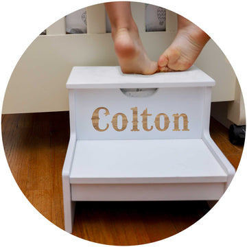 Personalized step stools generates Ohhhhs & Ahhhs at baby showers. They decorate their nursery and become an essential tool once a child starts walking. A gift that will be loved through childhood and cherished long after.