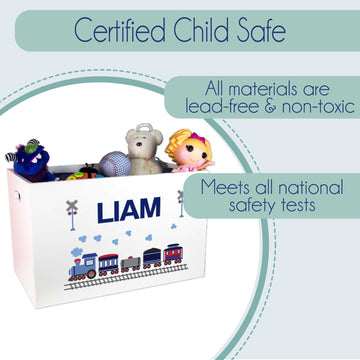 This toy box CLEANS UP! The 'lid-less" design makes getting AND putting toys away a breeze for the smallest of tots. Parents will rejoice in the ease of tossing toys in, even with a babe in arms or on the other side of the room. Sized just right to work alone or in groups. Great for closets and garage toys too. MEASURES: 23" x 13 1/2"W x 14 3/4 tall". Easy adult assembly. Constructed of quality wood composite. Built to last. All materials are certified Lead-Free and non-toxic.