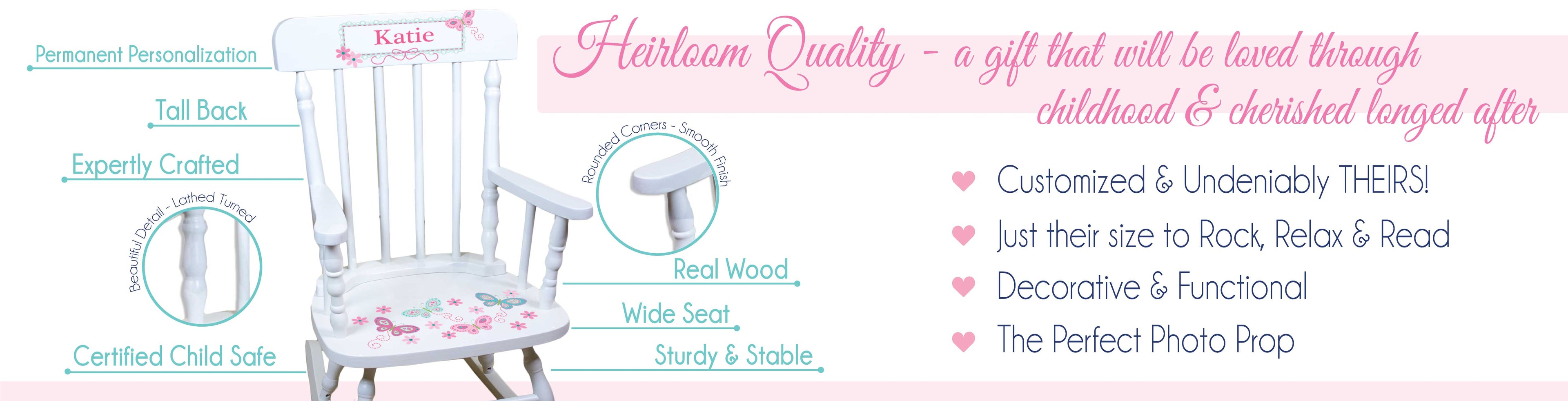 Personalized Heirloom Quality Child's Rocking Chair- enjoyed through childhood, cherished forever.